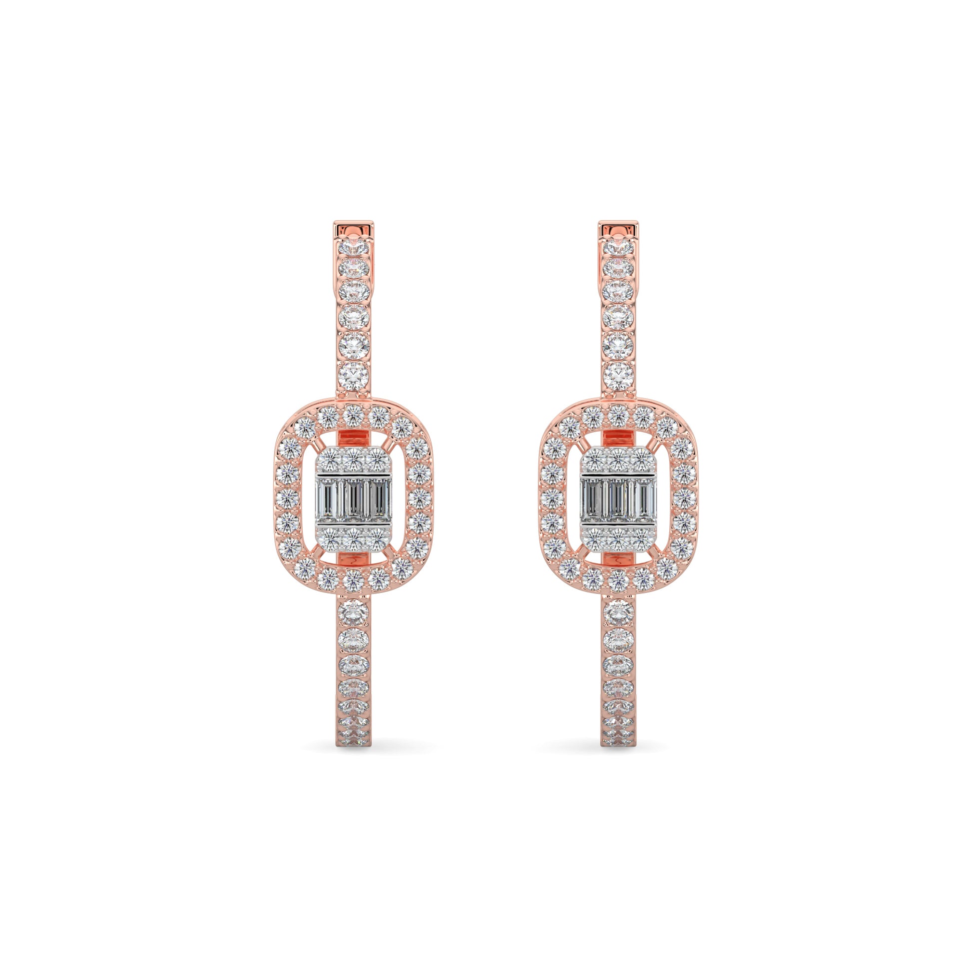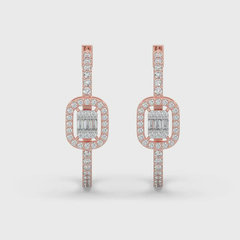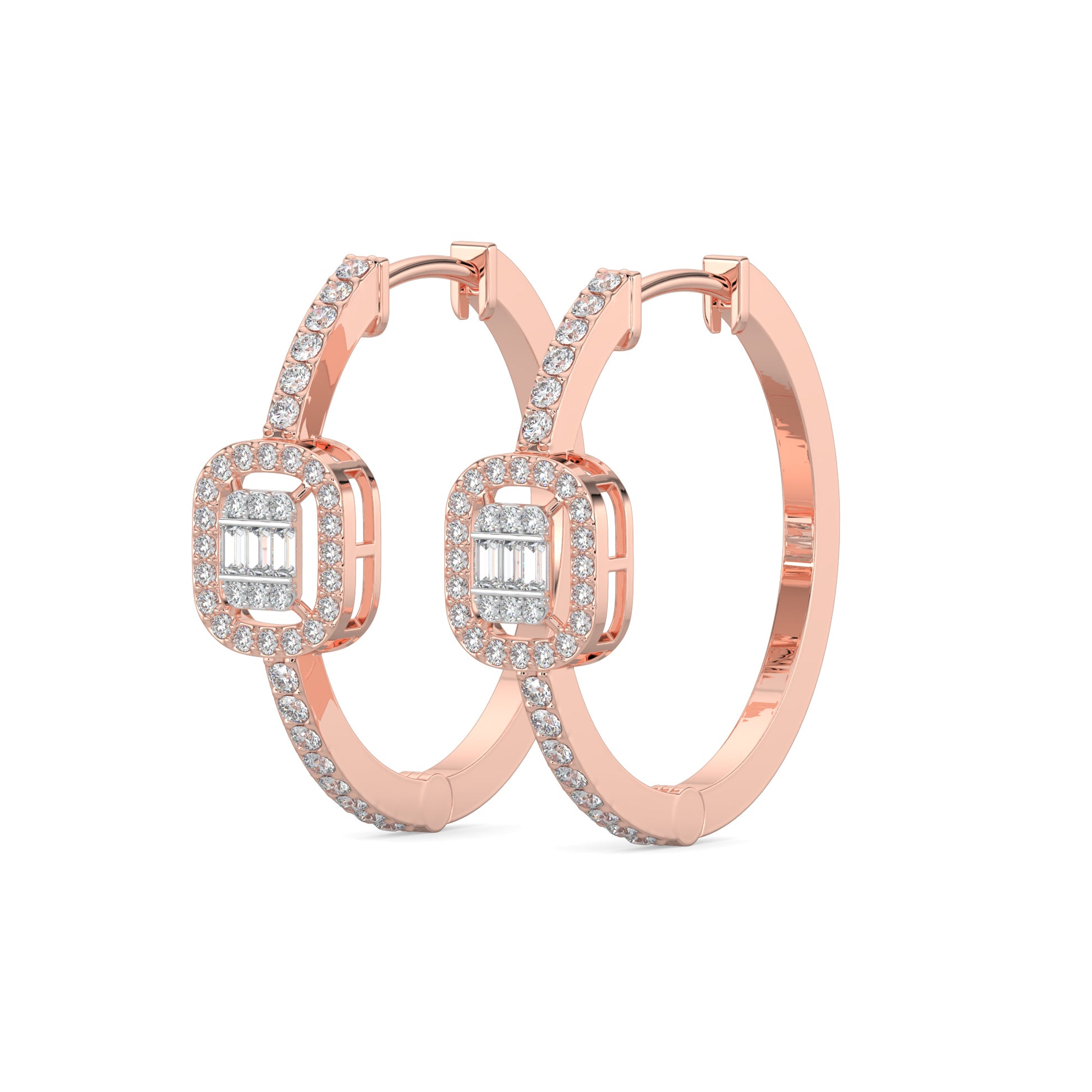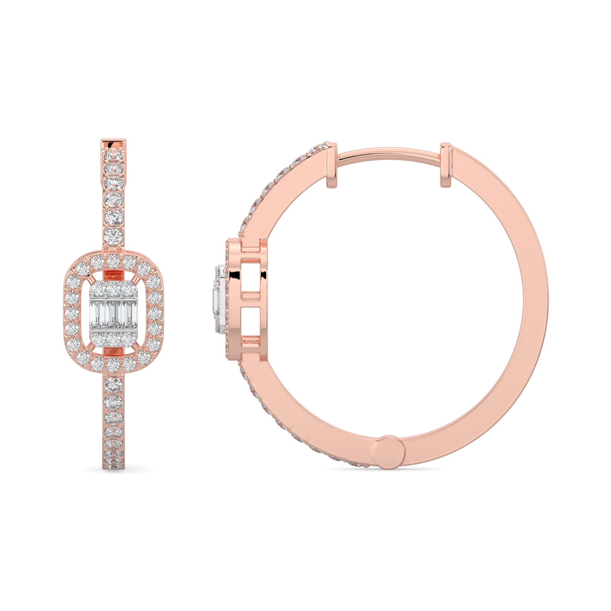 Make a sophisticated statement with our exquisite Baguette Diamond Hoop Earrings. Expertly crafted in radiant 18kt Rose Gold, these captivating hoops feature a stunning arrangement of brilliant baguette-cut diamonds.